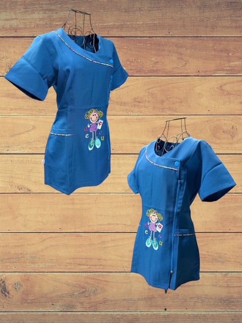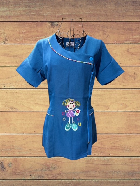 Delantal petroleo modelo muñeca, cierre al costado, dos bolsillos, tela bistrech.