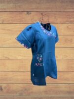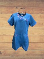 Delantal azul bordado flor