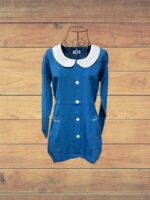 Delantal petróleo modelo tradicional botones manga larga, tela bistrech.