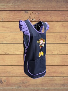 Jardinera azul marino con vuelos en hombros, abotonada en los costados, tela bistrech.