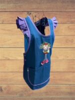 Jardinera petróleo con vuelos en hombros, abotonada en los costados, tela bistrech.
