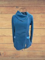 Chaqueta de polar petróleo con cuello redondo.